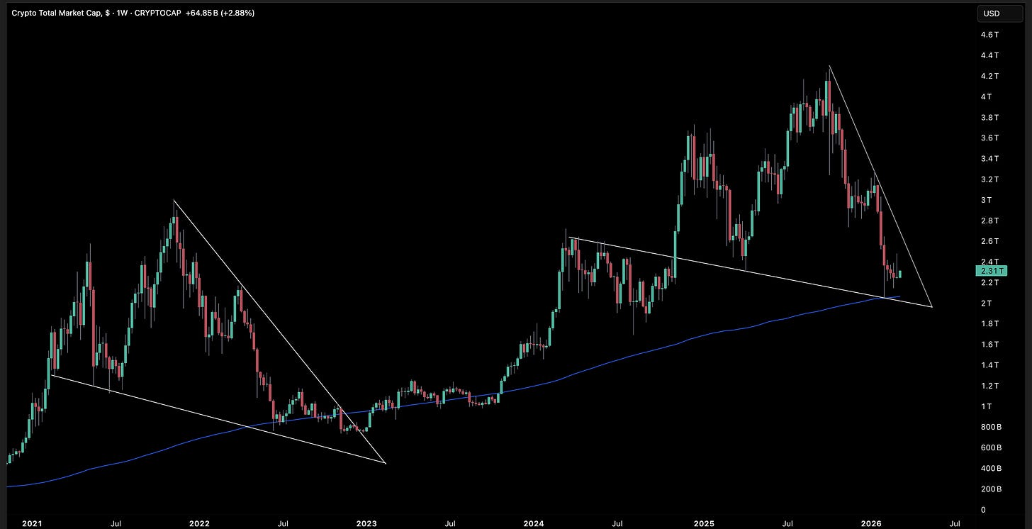 Global crypto market capitalisation was flat last week in what appears to be a bottoming level at $2.25T.