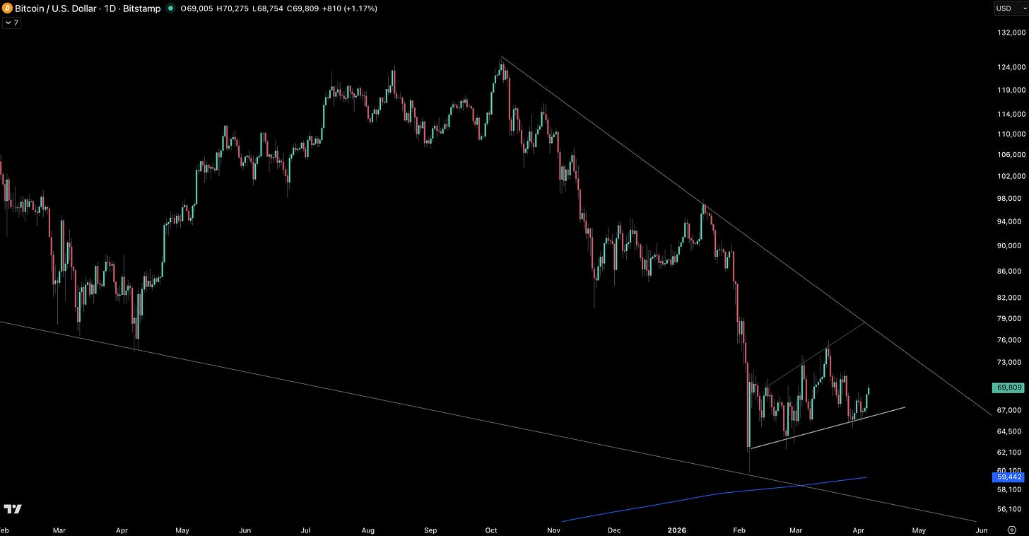 BTC is looking to re-gain $70k and is up +10.7% from the conflict start lows in late February.