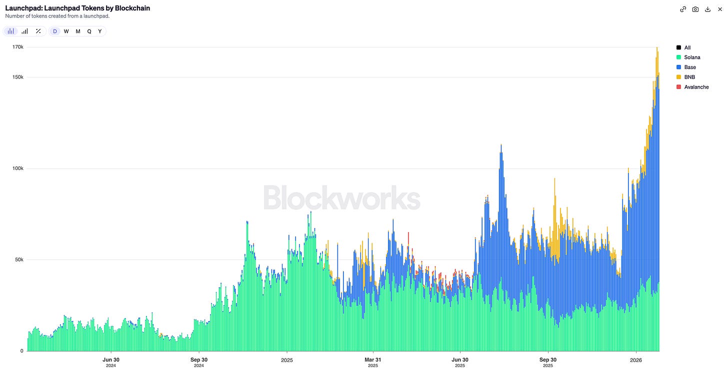 The number of tokens offered on launchpads has seen a dramatic rise in 2026, effectively 3x from where we just 1 month ago.