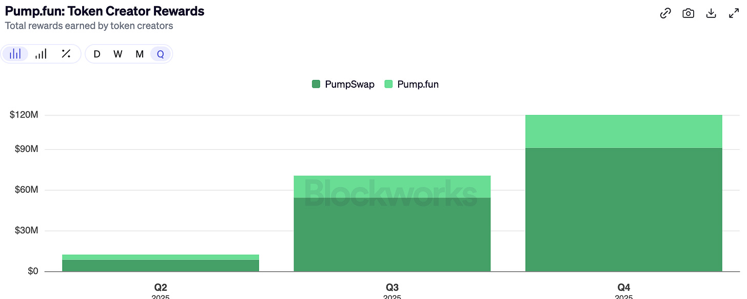 One notable reason why is the increase in ‘creator rewards’ where creators are earning greater fees on the volume of their respective tokens if they graduate onto the secondary markets - creating a flywheel of sticky interest.