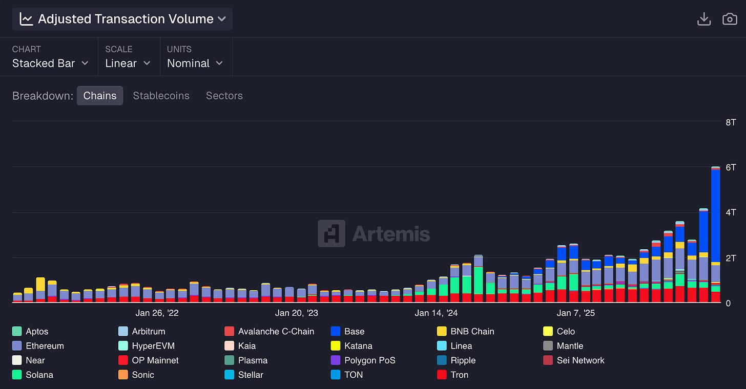 January 2026 has been the single largest MoM increase in nominal dollar volume on record (+$1.8T) despite the month not even being over. Base has been the largest contributor by chain (66%).