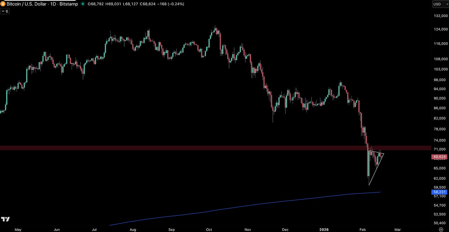 BTC has been unable to make meaningful ground >$70k, trading at ~$68k in what seems like a mini consolidation pattern in which we may see some more directional conviction in the near-term.