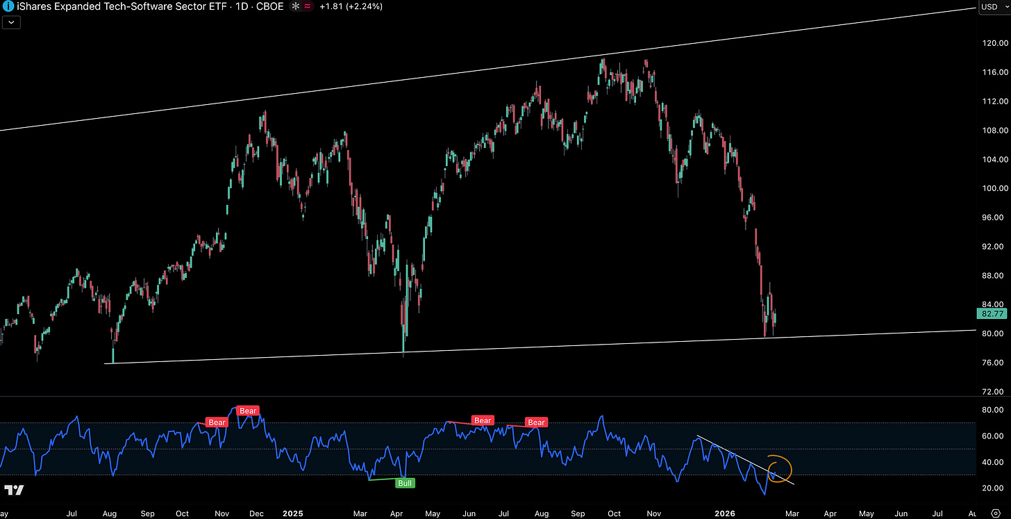 Finally, given everyone and their grandma is now talking about crypto correlations with software, we could be seeing early signs of a bottoming pattern emerge with indices like IGV.