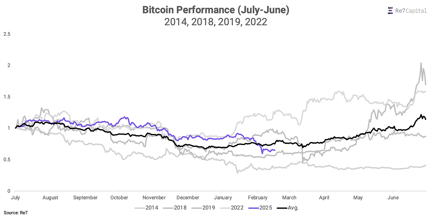 Note, starting in July allows us to match dates that start with seasonal weakness (low trading volume, reduced flows).